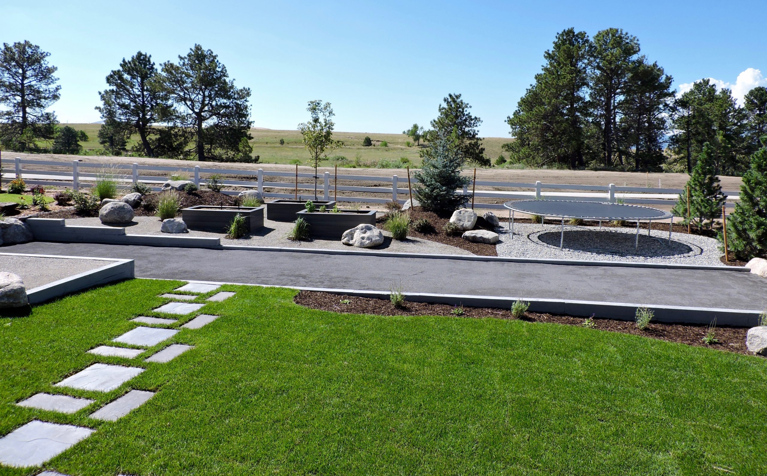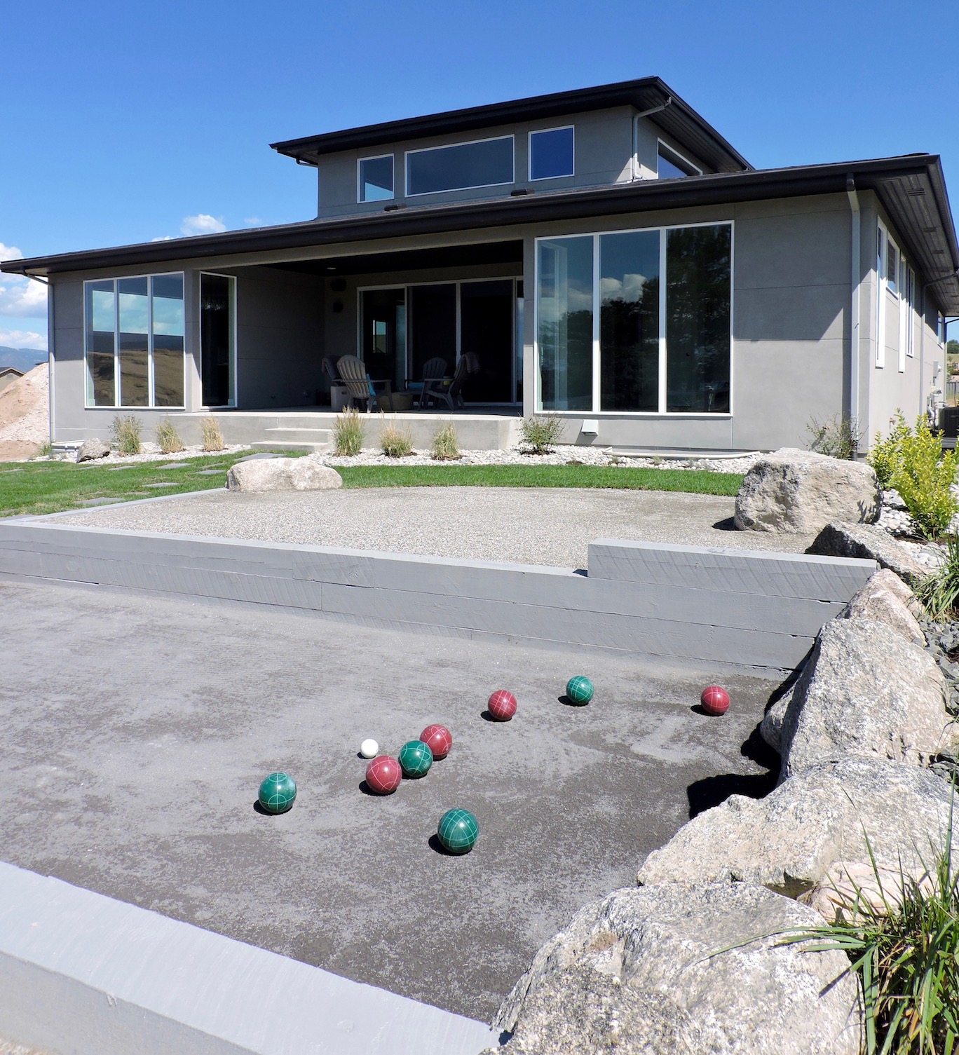 The floor plan emphasizes big views with floor-to-ceiling windows, sliding glass doors that open up the back of the house to an outdoor covered patio. Most nights we sleep with our curtains open to view the city lights and Pikes Peak at sunrise. Sometimes it feels like we live on vacation. We imported our love for Hawaiian aloha by adding an outdoor shower. A backyard bocce ball court was inspired by our playful trips to Sonoma wineries. My wife’s favorite addition is the floating staircase with horizontal steel railing—big city sexy.